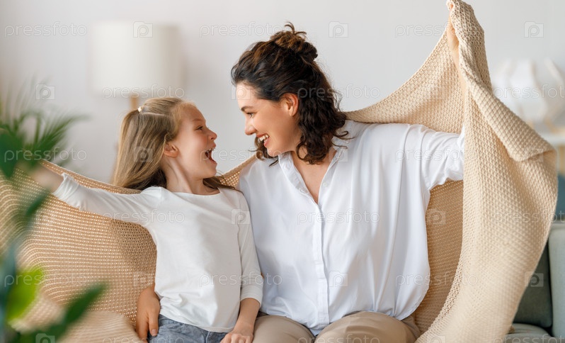 Счастливая мама и ее дочь играют
