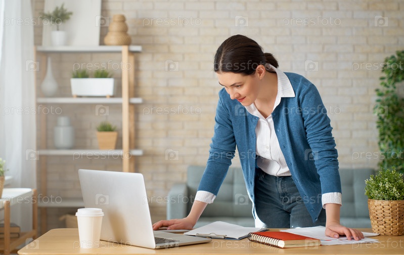Женщина работает за ноутбуком