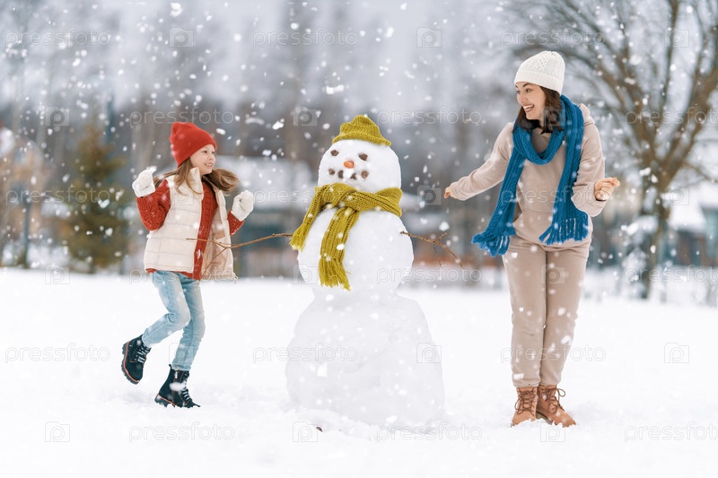 Мать и девочка на зимней прогулке