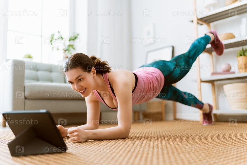 Женщина делает упражнения дома