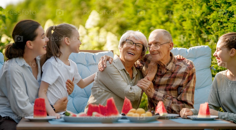 Семья проводит время вместе летним утром