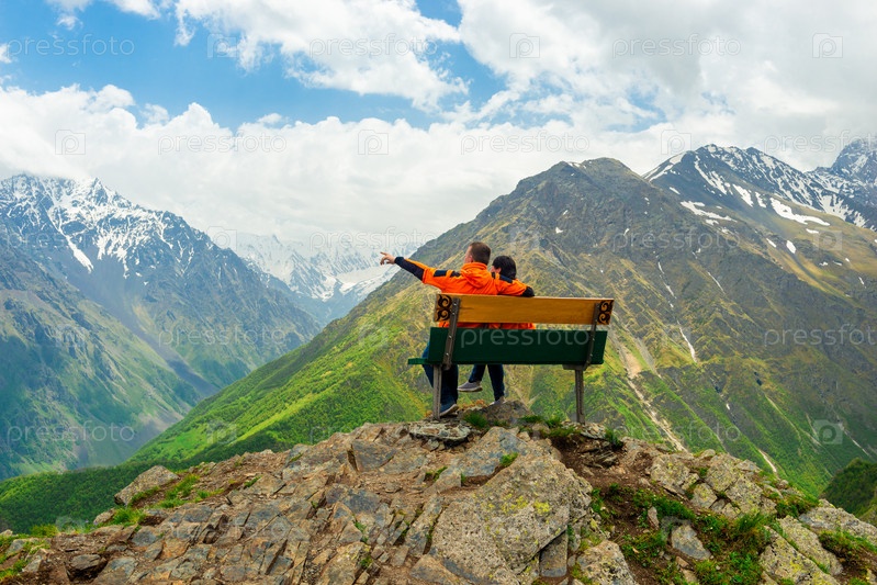 Мужчина и женщина любуются живописным видом высоких гор Северного Кавказа