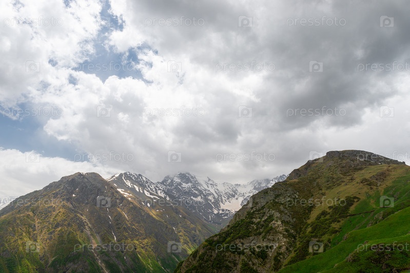 Живописное Глубокое горное ущелье на Северном Кавказе. Россия