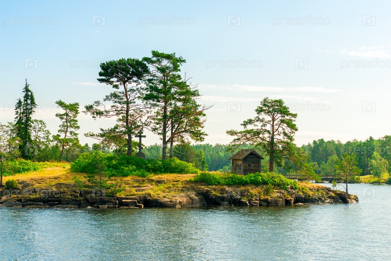 Старый деревянный дом стоит на берегу озера
