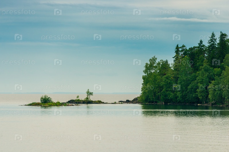 Северное Карельское озеро, дикая природа России. Лес, растущий на камнях