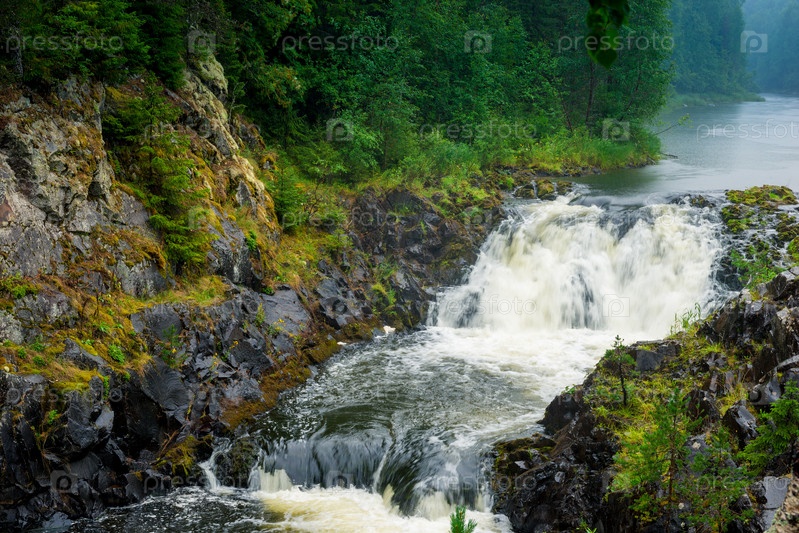 Водопад Кивач в заповеднике Карелии летом, Россия