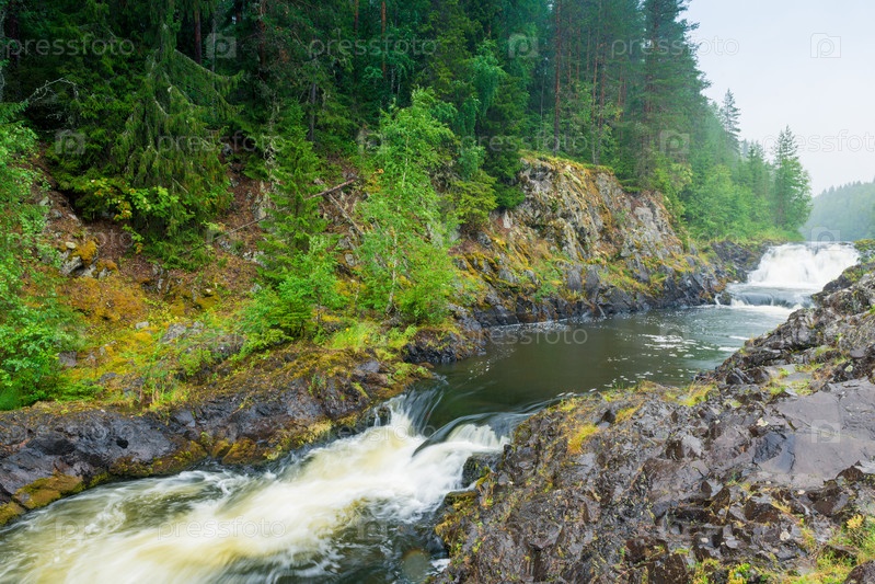 Водопад Кивач в заповеднике Карелии летом, Россия