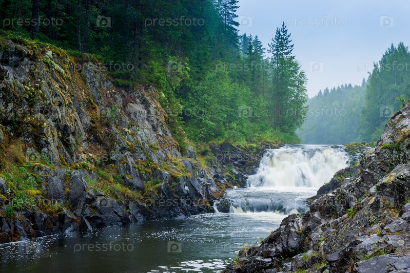 Водопад Кивач в заповеднике Карелии летом, Россия