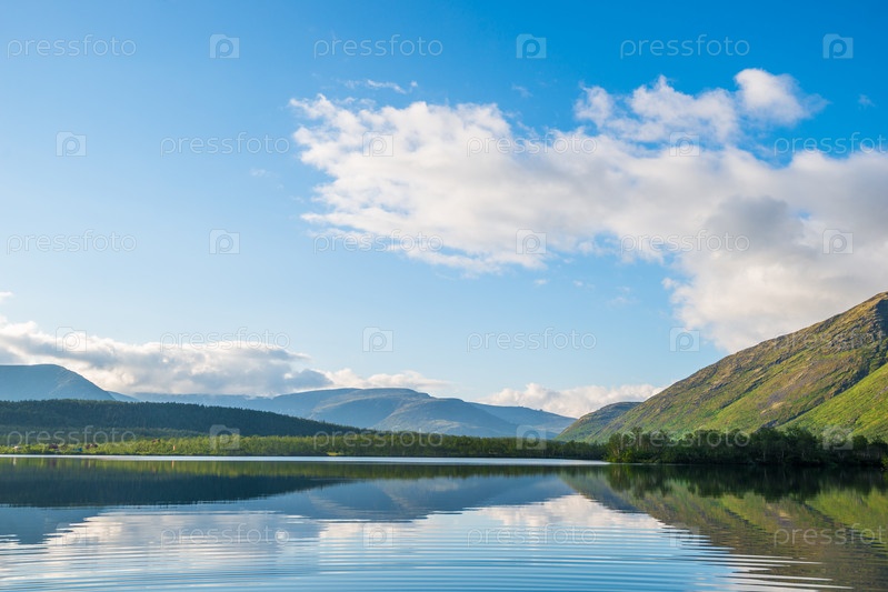 Панорамный вид на озеро в горах
