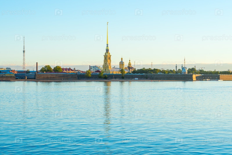 Панорамный вид на Петропавловскую крепость в городе Санкт-Петербург, Россия