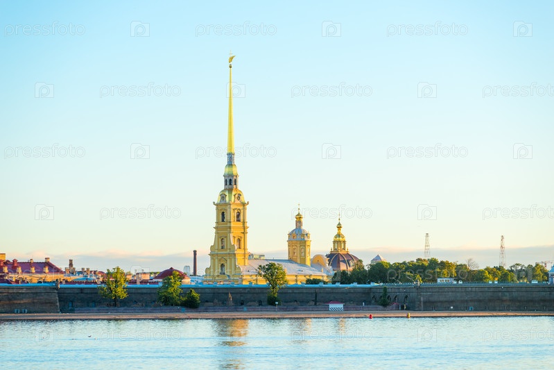 Панорамный вид на Петропавловскую крепость в городе Санкт-Петербург, Россия