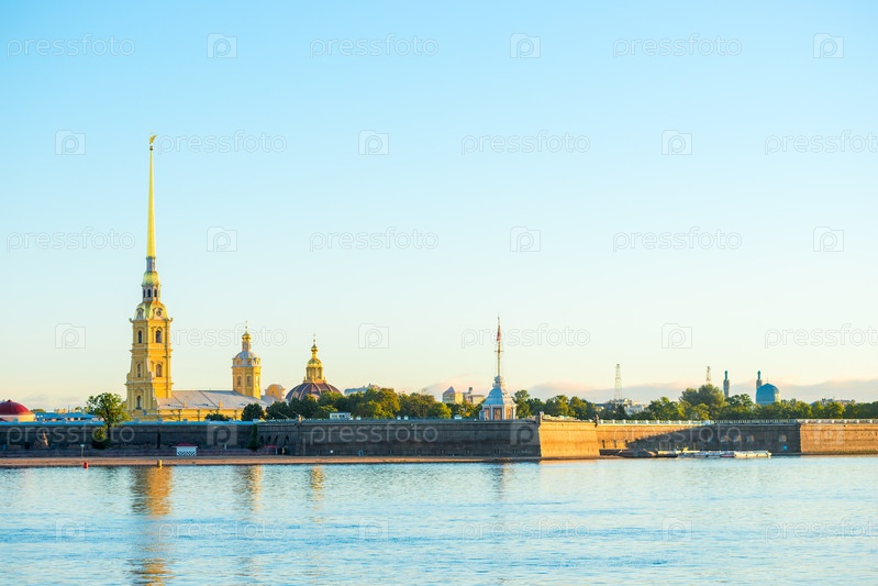 Панорамный вид на Петропавловскую крепость в городе Санкт-Петербург, Россия