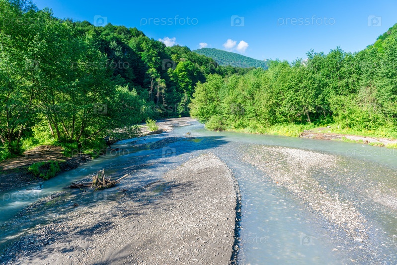 Бурная горная река с лазурной водой в горной местности Северного Кавказа. Россия