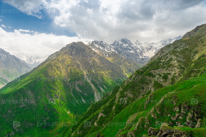 Живописное Глубокое горное ущелье на Северном Кавказе. Россия