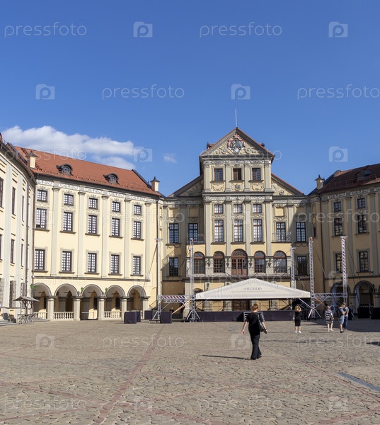 Несвиж, Беларусь - 08.08.2024 - Снимок известной архитектурной достопримечательности, замка Радзвиллов. Достопримечательность