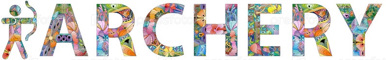 Ручная роспись художественного дизайна.Ручно нарисованная иллюстрация слов ARCHERY с иконой лучника для футболок и других украшений