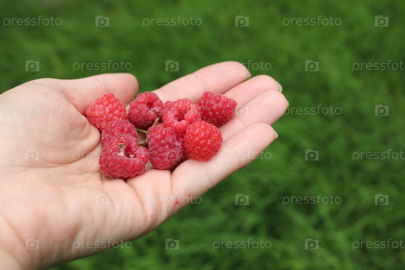Малина на ладони. Поедание ягод с куста. Сезон сбора малины