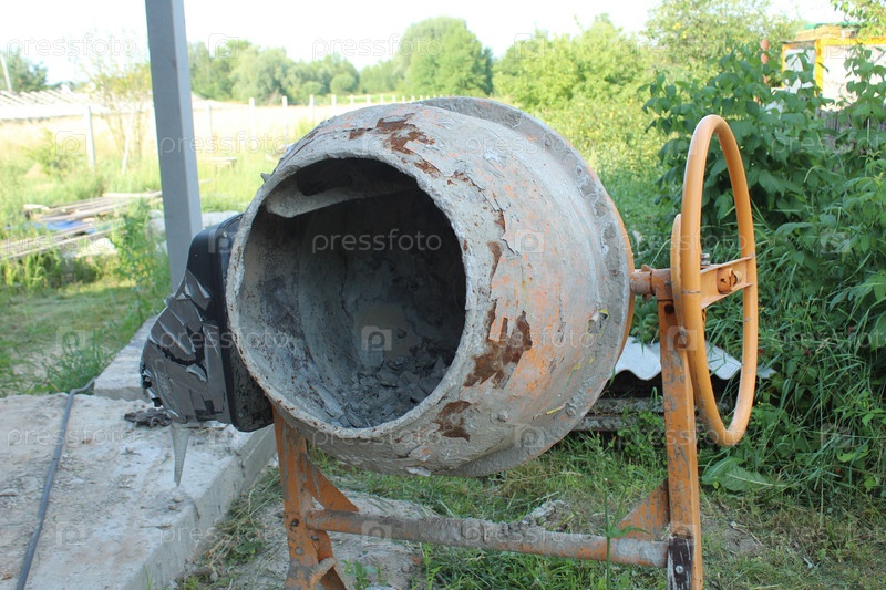 Строительный миксер крупным планом. Концепция строительной технологии для индивидуального использования