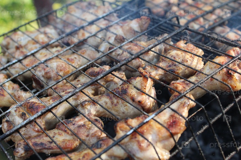 Приготовление курицы на решетке гриля. Приготовление мяса на открытом огне