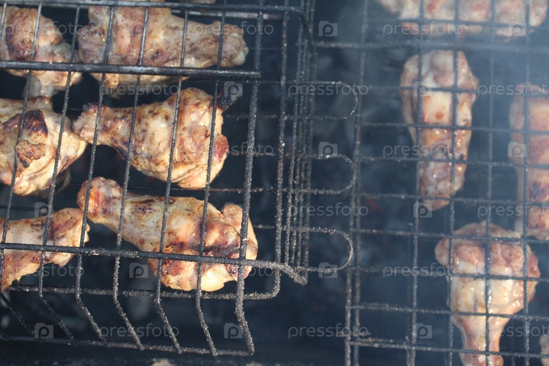 Жареные куриные ножки. Приготовление на решетке гриля. Приготовление еды для пикника