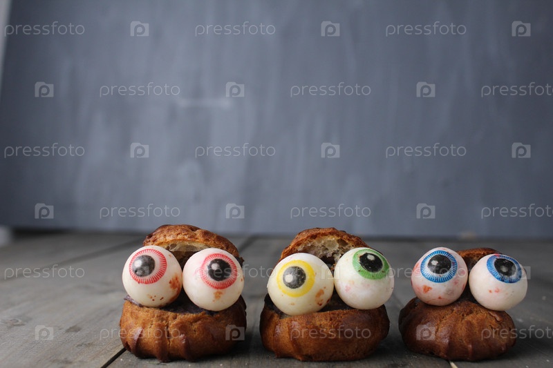 Эклеры с глазами на Хэллоуин. Забавные страшные стилизованные торты для праздника Хэллоуин
