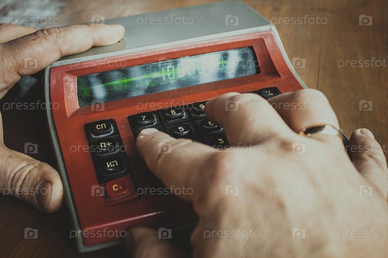 Старый электронный калькулятор с русской клавиатурой из Советского Союза
