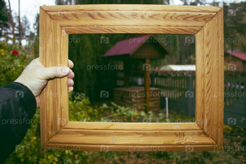 Деревянная квадратная винтажная ретро-рамка для фотографий в руке художника