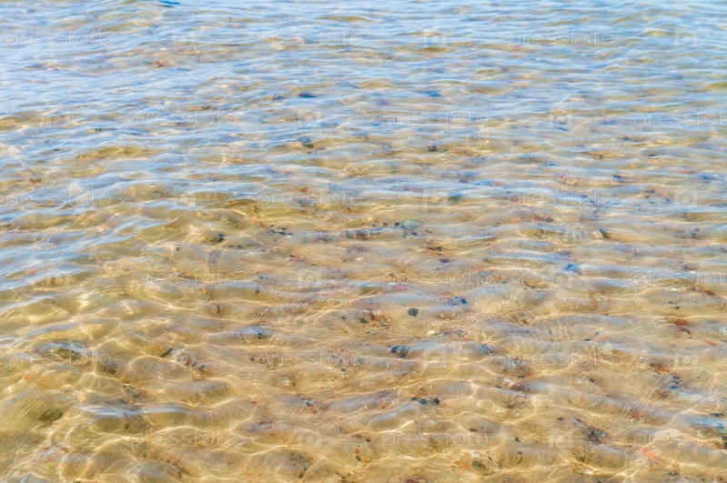 Фон — чистая вода. Вода с желтым оттенком. Дно водоема сквозь воду