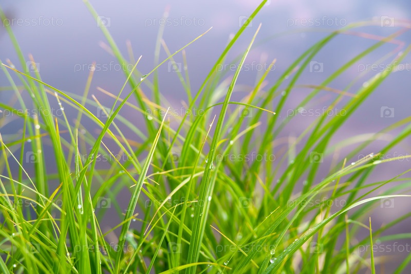 Роса на траве. Трава с каплями росы. Зеленая сочная трава