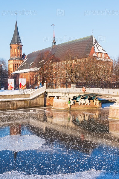 Калининград, Россия - 2021, 17 января: Кафедральный собор Калининграда. Исторический центр города. Могила Иммануила Канта