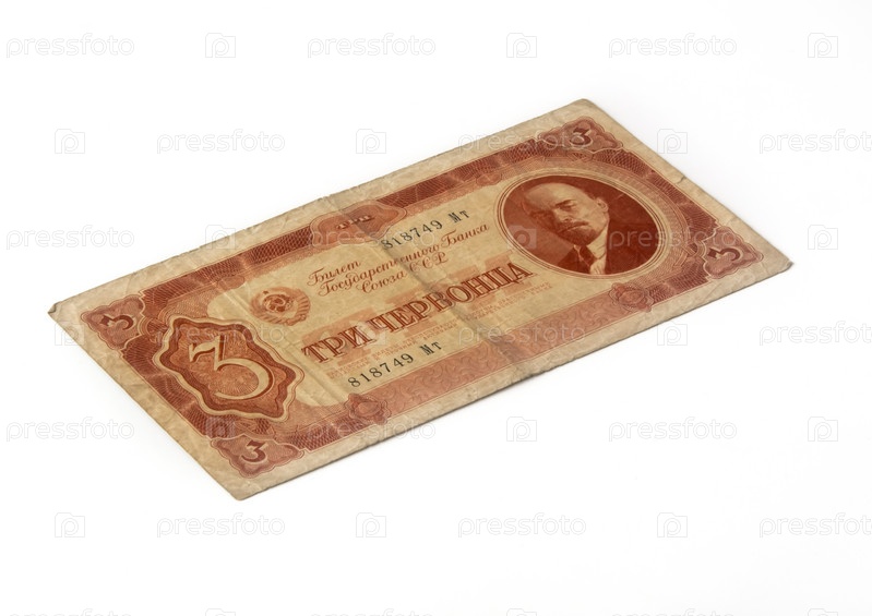 Три червонца СССР на белом фоне