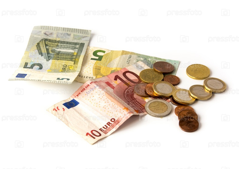 Наличные евро на белом фоне