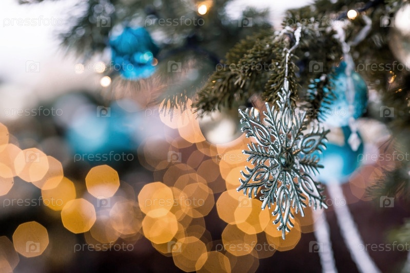 Красивое праздничное украшение снежинки на елку. Крупный план. Красивый рождественский фон. Концепция украшений и декора на новый год. Новогодняя открытка 2025