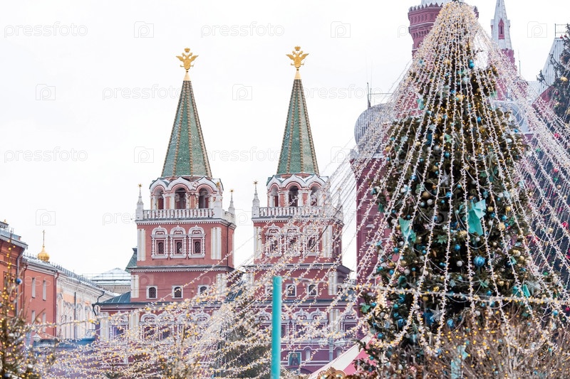 Красивые праздничные украшения на елке. Крупный план. Красивый рождественский фон. Концепция украшений и декора на новый год. Новогодняя открытка 2025