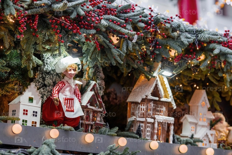 Новый год 2025. Новогодние украшения и игрушки на улицах города. Рождественские праздники, зимний новогодний декор в центре Москвы