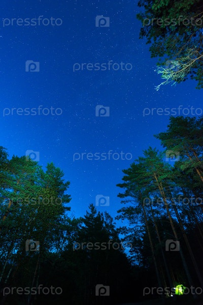 Млечный Путь возвышается над соснами на переднем плане