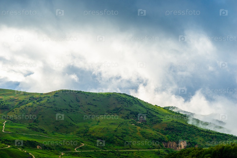Живописные горы в прекрасных облаках Северного Кавказа. Россия