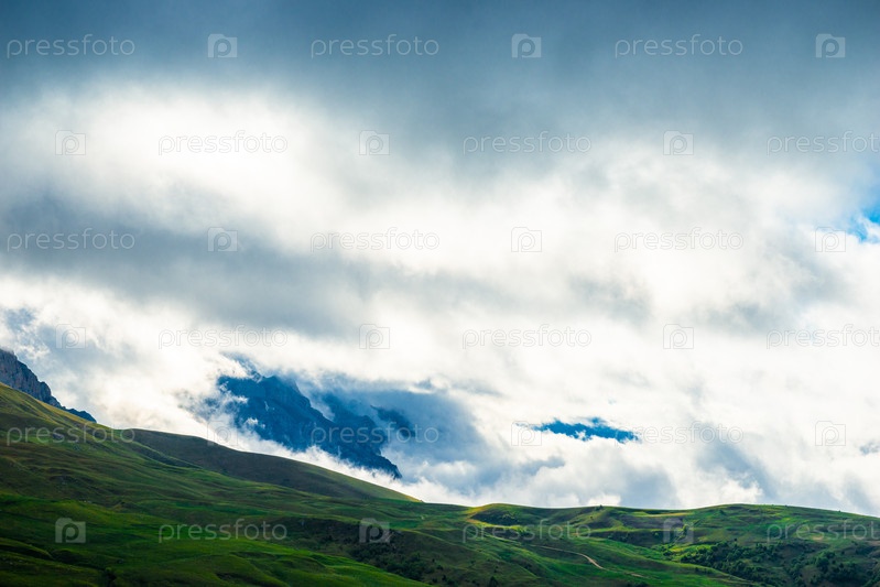 Живописные горы в прекрасных облаках Северного Кавказа. Россия