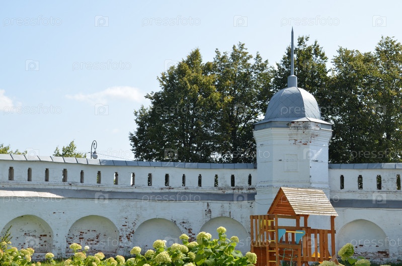 Монастрыские стены и Юго-западная башня Богородице-Рождественского монастыря в городе Владимире, входящем в Золотое кольцо России