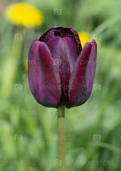 Темный тюльпан на фоне зеленой травы