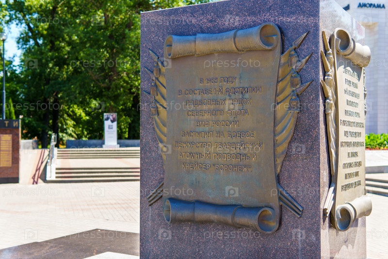Городской пейзаж. Памятная доска "Подводный крейсер "Воронеж"". Парк Патриотов. Воронеж