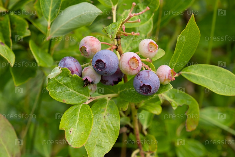 Голубика болотная на кусте, крупный план