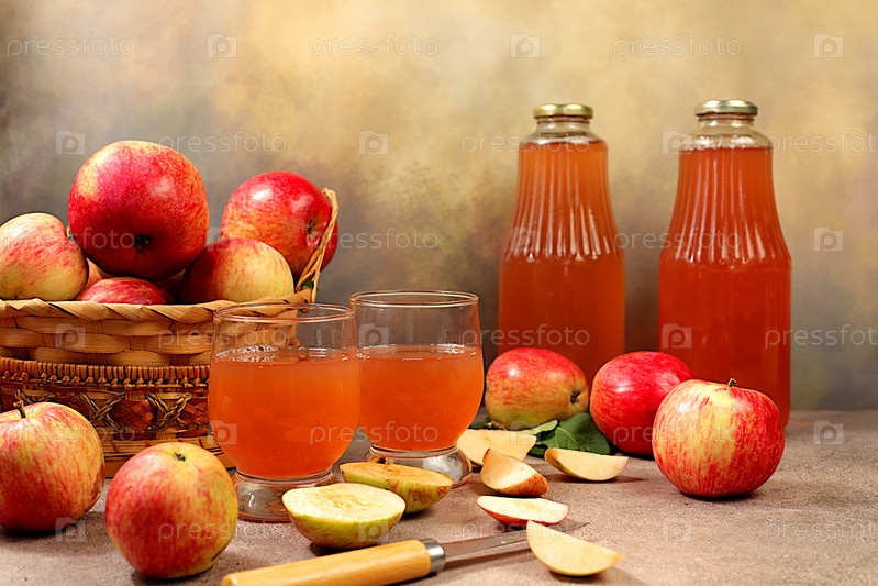 Яблочный сидр, сок или ферментированный напиток и свежие яблоки на солнечном столе. Осенний баннер. Диета и концепция потери веса. Здоровое питание, детоксикация организма, яблоки помогают очистить организм и снизить вес