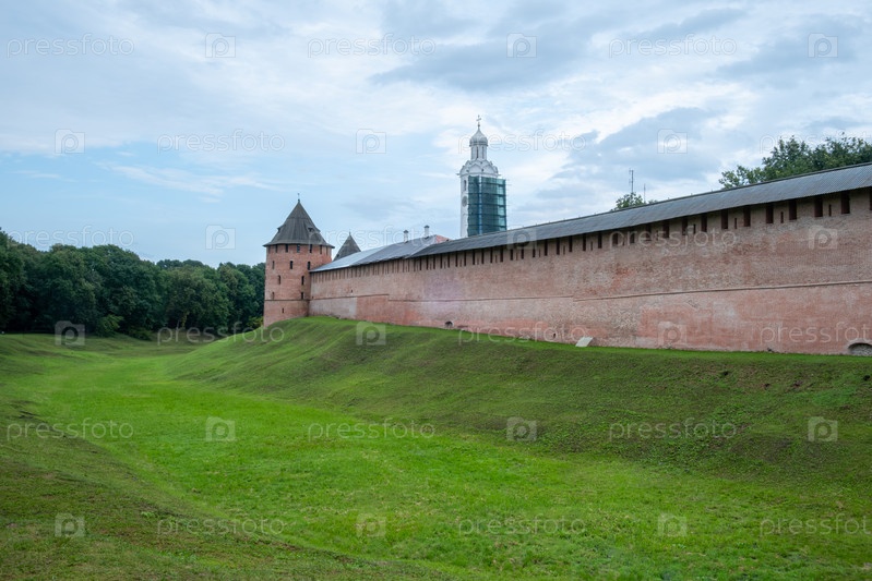Новгород, Россия - 29, 24 июля. Вид на крепостную стену Новгородского кремля