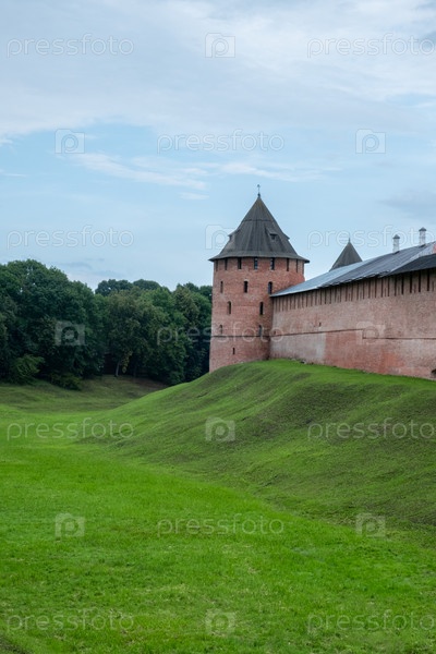 Новгород, Россия - 29, 24 июля. Вид на крепостную стену Новгородского кремля