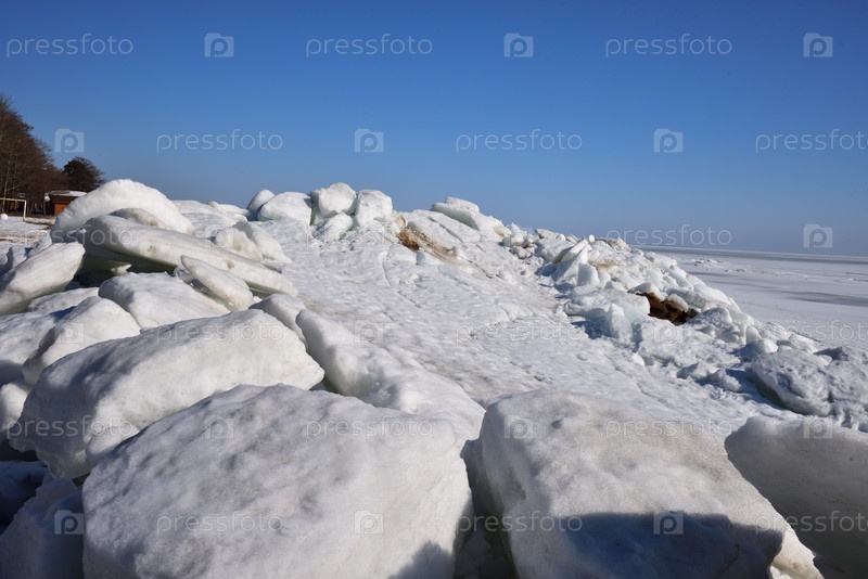 Как будто огромный бульдозер сгреб ледяные горы на краю пляжа в Зеленогрске, но это все силы природы