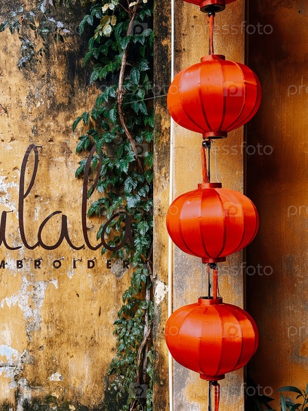 Яркий свет: Китайские фонари на фоне старинной стены