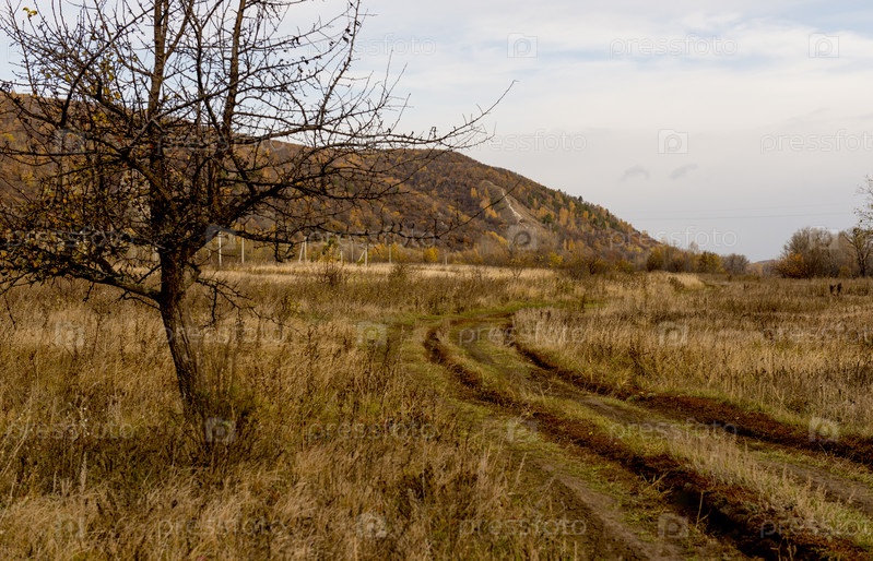 Самарская лука. Вид на гору Белую. Сельская дорога вблизи села Подгоры