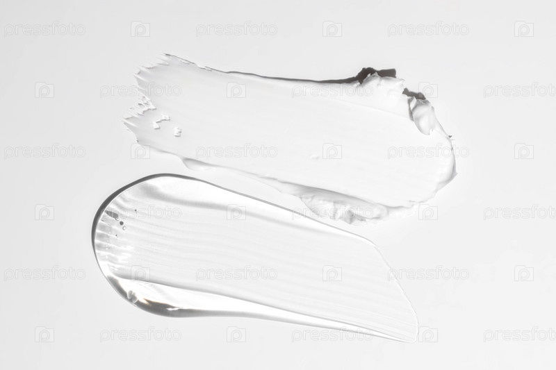 Крем и гель текстуры мазки изолированы на белом фоне. крема для лица, геля или лосьона для тела уход за кожей. крем для лица косметический продукт мазок swatch