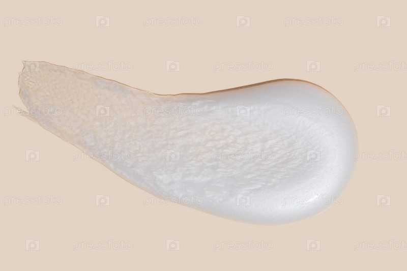 Кремовый мазок белой косметической текстуры крупным планом на бежевом фоне концепция ухода за кожей